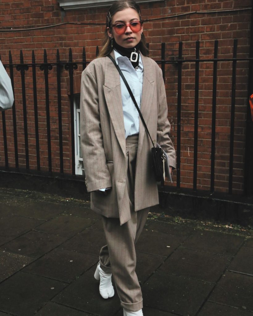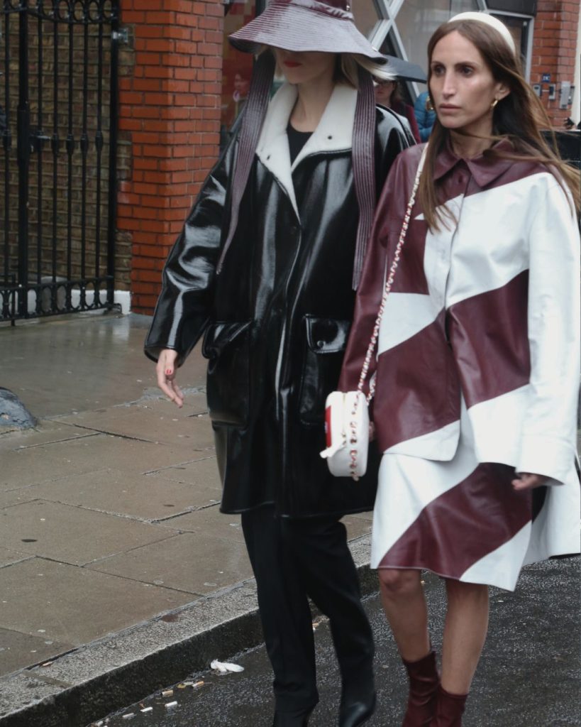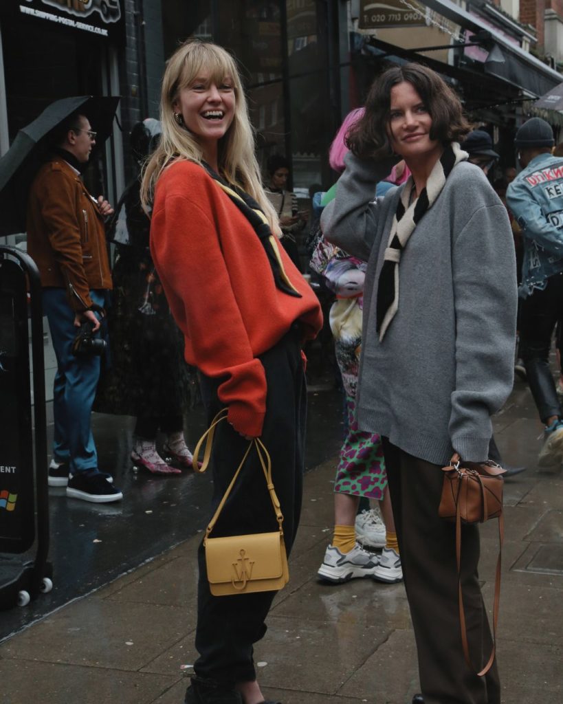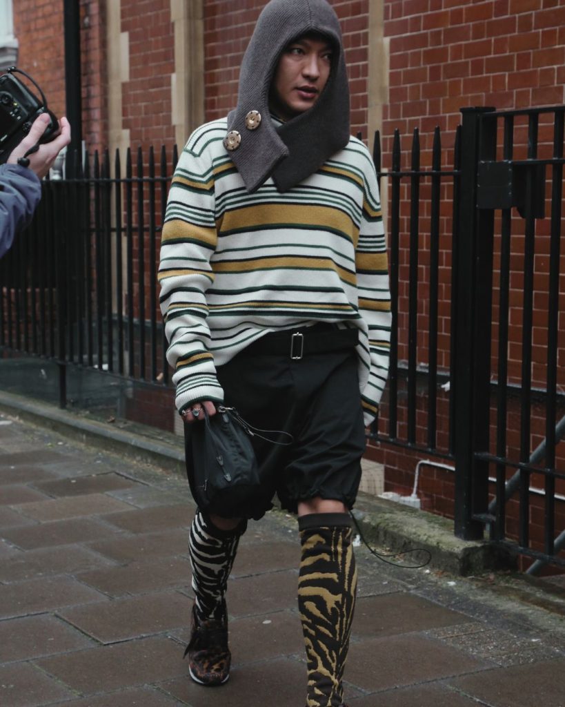 Highlight of AW19 JW. ANDERSON in London 雨のロンドンで撮ったJW AndersonのAW19。ストリートスナップ歴二年目(くらい…!?)の私は、声をかける躊躇とシャッターを切る高揚を感じていたのを覚えている。 濡れた路面が光を返し、被写体たちは遊び心と知性を軽やかに行き来する。ストライプニットにショーツ、片脚だけのアニマル柄レッグウエアも個性的で面白い。 ラッカーの艶を帯びたコートやキャメルのトレンチは赤レンガに映え、一瞬で画になるのが、また楽しかったしカッコよかった。 コレクションの核はコントラスト。 ロマンティックを少し不穏に転じる視点や、動きで揺れるシルクが綺麗で、今でも記憶に残っている。シャッターを切るたびに、そこの写る全てが魅力的に見えるほど、皆それぞれのファッションを楽しんでいた。 ロンドンらしい季節/天候が、この時のJW Andersonに最も似合う背景だった。
